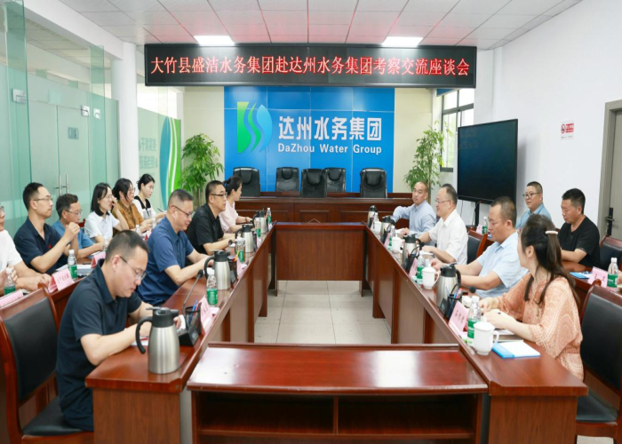 7月2日,大竹縣盛潔水務(wù)集團(tuán)有限公司黨委書記、董事長(zhǎng)孔祥勝一行8人來我司考察交流供水合作及經(jīng)營(yíng)服務(wù)工作,集團(tuán)公司黨委書記、董事長(zhǎng)盧輝,黨委副書記、總經(jīng)理熊戈亮,黨委委員、副總經(jīng)理、財(cái)務(wù)總監(jiān)王春雷,總工程師李莉君,相關(guān)業(yè)務(wù)部門參加。