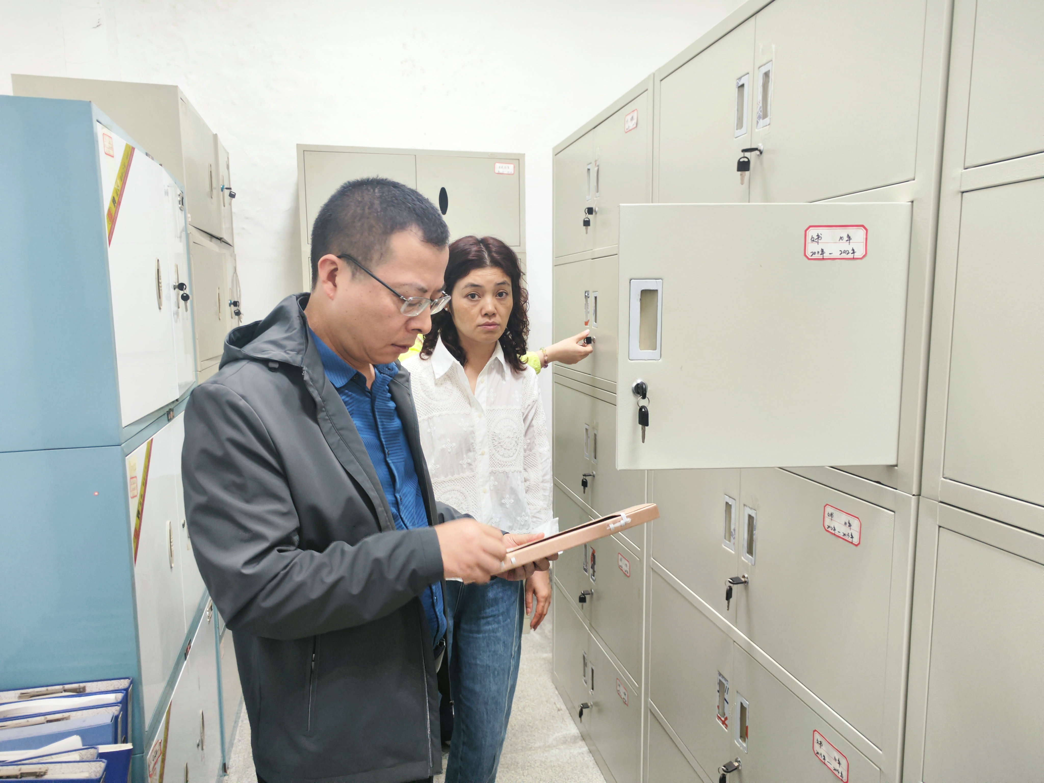 調(diào)研現(xiàn)場,朱亞成一行先后查看了檔案室基礎(chǔ)設(shè)施建設(shè)、安全防護和視頻監(jiān)控等相關(guān)情況,重點抽查了各類檔案的歸檔、存儲、保管及查閱使用情況,全面掌握當前檔案管理工作的實際現(xiàn)狀。