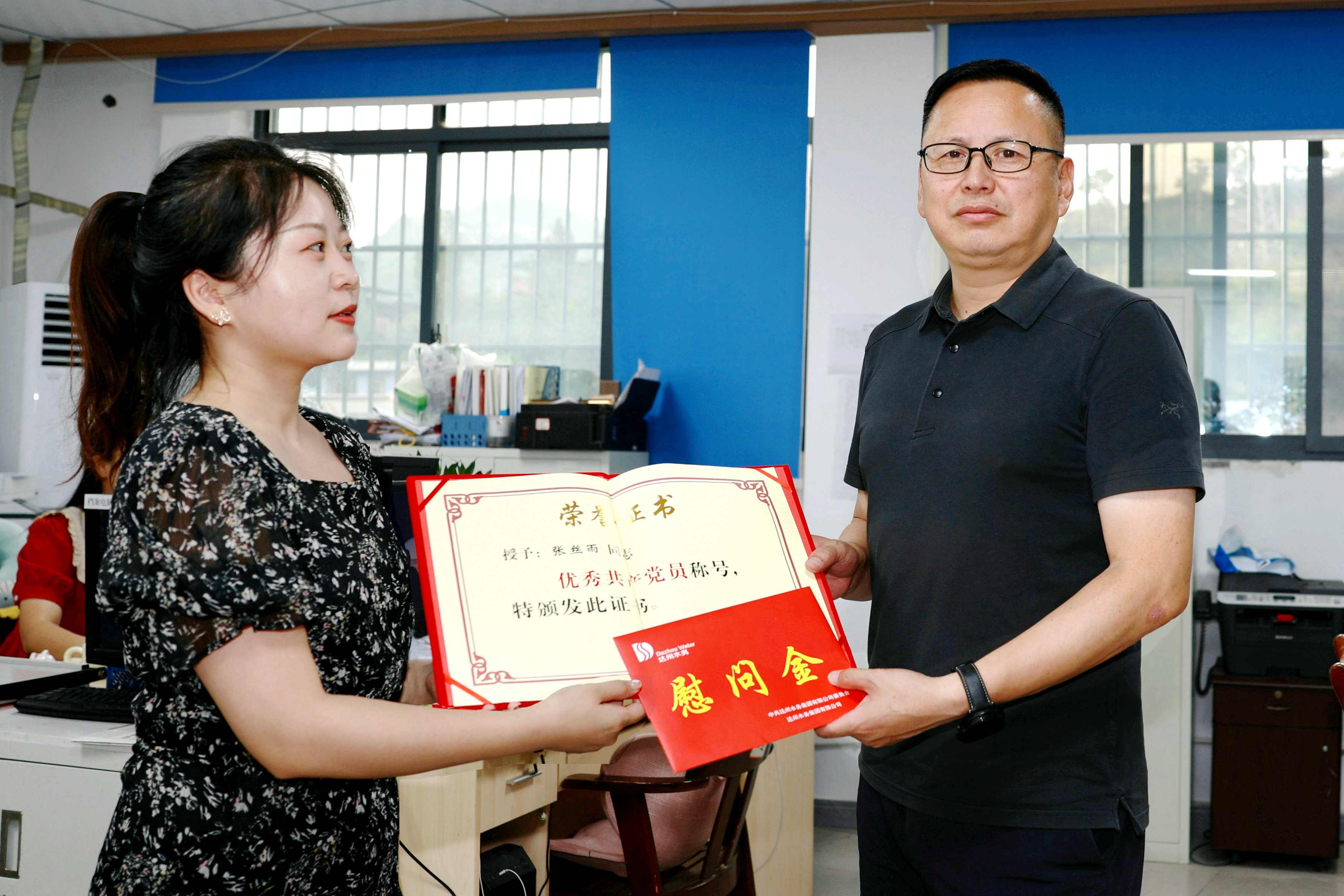 支部聯(lián)系領導向獲2024年集團公司優(yōu)秀共產黨員及優(yōu)秀黨務工作者頒發(fā)榮譽證書,向受到表彰的優(yōu)秀個人送上熱烈祝賀,也希望獲獎同志能夠更好發(fā)揮黨員先鋒模范作用,全體黨員要以先進典型為榜樣,向優(yōu)秀代表看齊,在創(chuàng)建高質量達州水務新征程上彰顯更強擔當、展現(xiàn)更大作為。