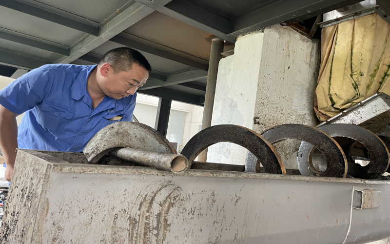 2018年1月,王穎被安排到新建成的周家壩污水廠工作,由于有污泥脫水的工作經(jīng)驗(yàn),帶頭學(xué)習(xí)新廠新設(shè)計的板框壓濾系統(tǒng)的重?fù)?dān)自然而然落在他肩上,他沒有抱怨新廠離家遠(yuǎn)、交通不便利、脫水車間環(huán)境差等客觀問題,而是靜下心來一頭扎進(jìn)學(xué)習(xí)的熱潮中。板框脫水系統(tǒng)看似只有進(jìn)泥、調(diào)泥、壓泥、出泥幾道工序,但整套流程下來需要進(jìn)行數(shù)十次步驟,還要根據(jù)泥質(zhì)調(diào)整步驟中的參數(shù),不厭其煩地記錄下每一次的試驗(yàn)數(shù)據(jù),午餐時間他都毅然堅守在現(xiàn)場,同事們幫忙打來的飯,基本上是扒拉幾口便又和師傅討論起問題。尤其是炎熱的夏天“汗如泉涌”,機(jī)房的氣味刺鼻難聞,很多人不愿久干,為了能保證新廠正常出水投運(yùn),做好污泥處理的大后方,他堅持下來了,正是這樣重復(fù)的“常規(guī)操作”讓他順利出師。