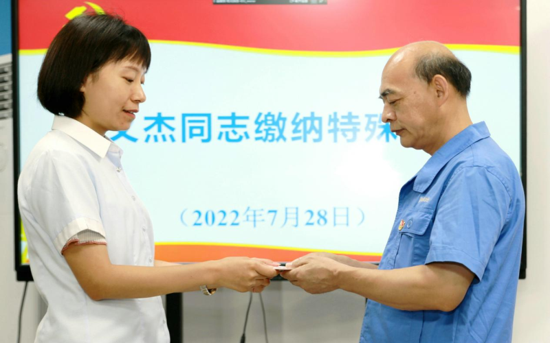 得到愛,分享愛。楊義杰同志的無私奉獻(xiàn)精神受到了集團(tuán)公司黨委的高度關(guān)注,也得到了上級黨委授予的各項(xiàng)榮譽(yù)。每年春節(jié)前,公司黨委均要慰問他這位省勞模,為他送去慰問金。他在感恩之時(shí),也牢記自己的黨員身份,多次向黨組織繳納特殊黨費(fèi),表達(dá)對黨組織的感激之情。2014年6月17日,他繳納特殊黨費(fèi)1000元,要求不作宣傳,不要讓同事們知道。2017年10月,他又向黨組織繳納特殊黨費(fèi)1000元,以迎接黨的十九大隆重召開。去年,為迎接黨的二十大勝利召開,他再次交納1000元大額黨費(fèi),以表達(dá)他對黨的無限忠誠和熱愛。