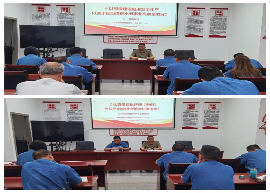 強黨性,講好一黨專題黨課。 一堂生動的黨課,是一場深刻的理論教育、一次初心的凈化洗禮。6月26日,支部聯(lián)系領(lǐng)導集團黨委委員、紀委書記王宇為支部全體黨員上了一堂主題為“以紀律建設(shè)促進安全生產(chǎn) 以實干擔當推進水務事業(yè)高質(zhì)量發(fā)展”的黨課,并對全體黨員同志如何嚴格遵守黨規(guī)黨紀提出更高的要求。支部書記朱玉峰詳細解析了《中國共產(chǎn)黨紀律處分條例》中的“六大紀律”的相關(guān)內(nèi)容,讓全體黨員對“六大紀律”有了更清醒的認識,黨性素養(yǎng)被進一步錘煉。