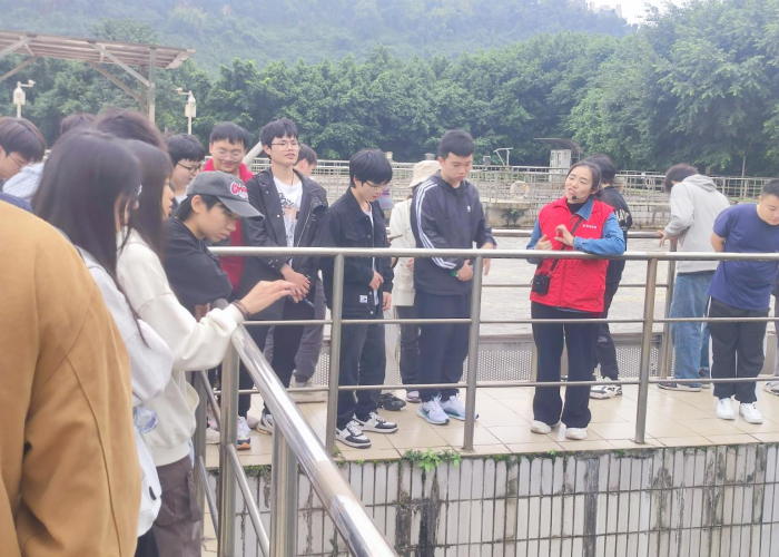 培訓(xùn)中,惠泉公司三名管理人員分別帶隊(duì),組織學(xué)生參觀了入水口、粗格柵、細(xì)格柵、沉砂池、生化池、脫水車間、濾池、出水口等污水處理設(shè)施,詳細(xì)講解污水處理工藝。學(xué)生們一邊認(rèn)真聆聽講解,一邊仔細(xì)觀察污水處理的各個環(huán)節(jié),不時提出問題與講解員進(jìn)行交流。通過參觀與互動,學(xué)生對污水處理的每個環(huán)節(jié)有了深入了解,親眼見證了“渾流變清泉”的污水處理奇跡。